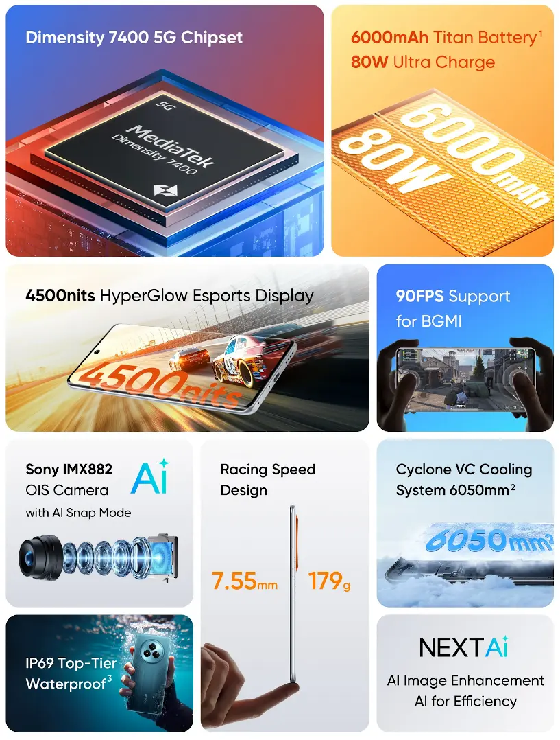 中国のOPPO系メーカーRealMeは2024年4月9日、MediaTek Dimensity 7400で搭載の5Gスマートフォン「realme NARZO 80 Pro 5G」をインドで発表しました。