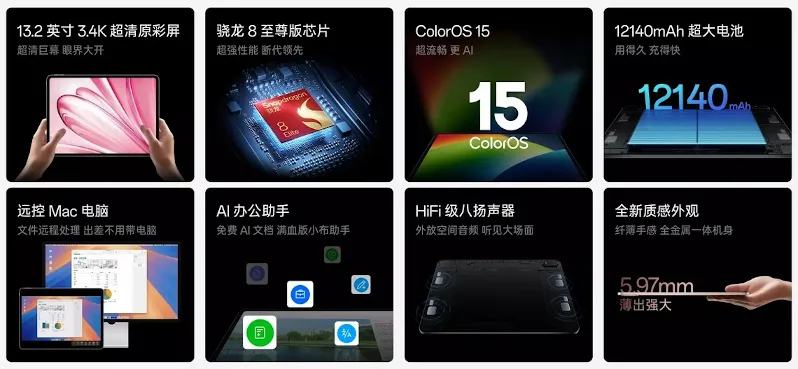 中国のメーカーOPPO(オッポ)は2025年4月10日、中国でSnapdragon 8 Elite搭載の13.2インチAndroidタブレット「OPPO Pad 4 Pro (OPD2409)」を発表しました。