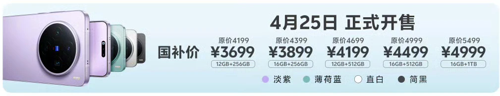 カラーはブラック、ホワイト、ブルー、パープルの4色展開。中国で2025年4月に発売、価格はRAM12GB/256GBが4199CNY(約8.1万円)、RAM16GB/512GBが4399CNY(約8.5万円)、RAM12GB/512GBが4699CNY(約9.1万円)、RAM16GB/512GBが4999CNY(約9.7万円)、RAM16GB/1TBが5499CNY(約10.7万円)となっています。