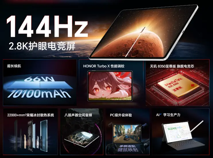 中国でMediaTek Dimensity 8350 Ultra搭載タブレット「HONOR Pad GT」発売