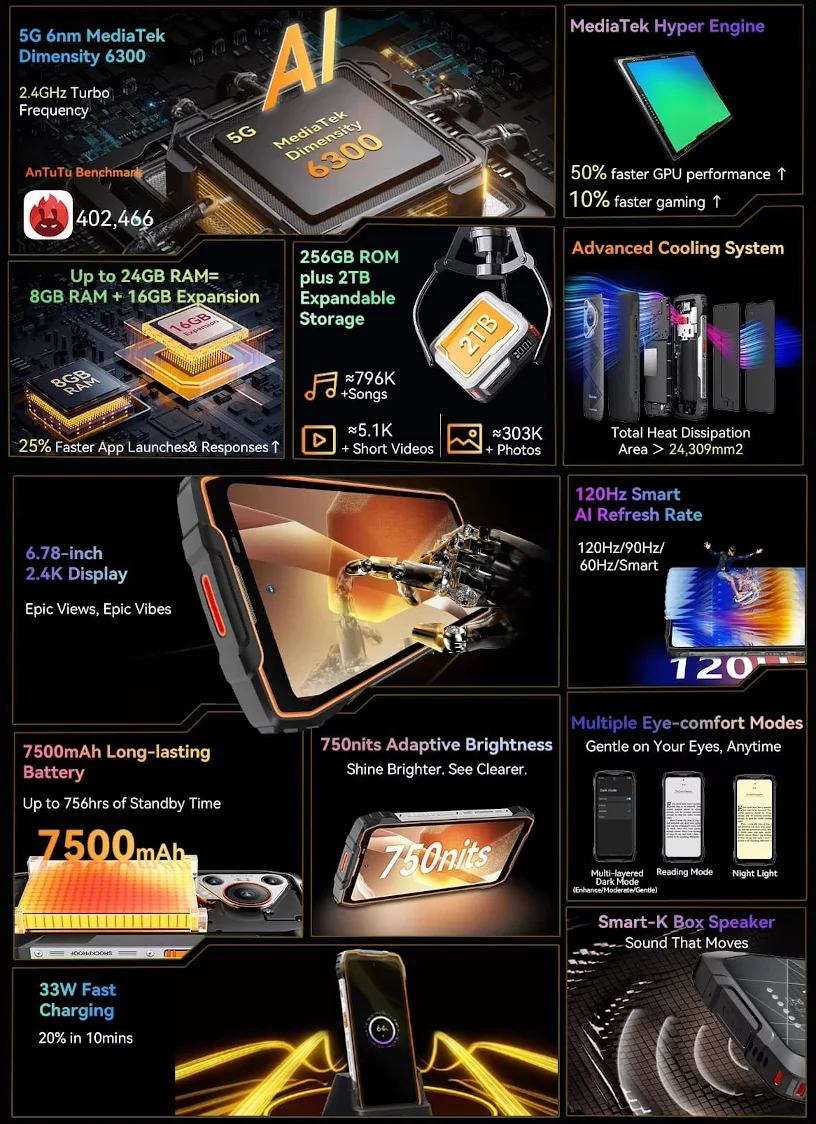中華スマホ ブランドのBlackviewは、海外でMediaTek Dimensity 6300搭載5Gタフネススマートフォン「Blackview BL8000」を発表しました。