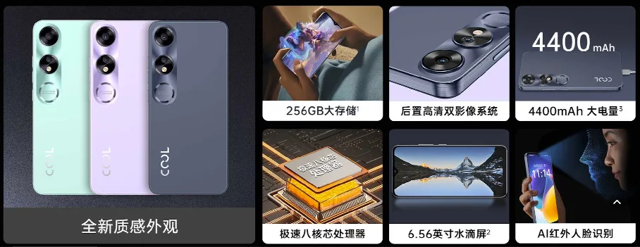 Coolpad Fengshang 60 Pro は、6.56インチ HD+(1612×720)ディスプレイ、CPUにUNISOC 2.0GHz オクタコア、RAM4GB/6GB、ストレージ容量は64GB/128GB/256GB、メインカメラは1300万画素デュアルカメラ搭載のエントリークラスのアンドロイドスマートフォンです。