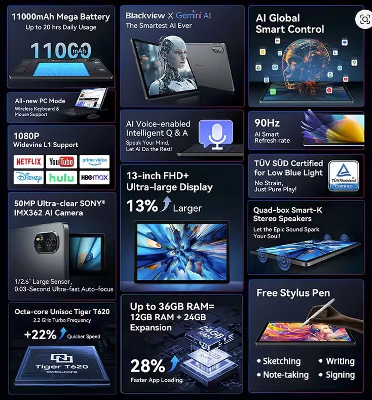 中華スマホ ブランドのBlackviewは、13インチAndroidタブレット「Blackview MEGA 8」を発表しました。