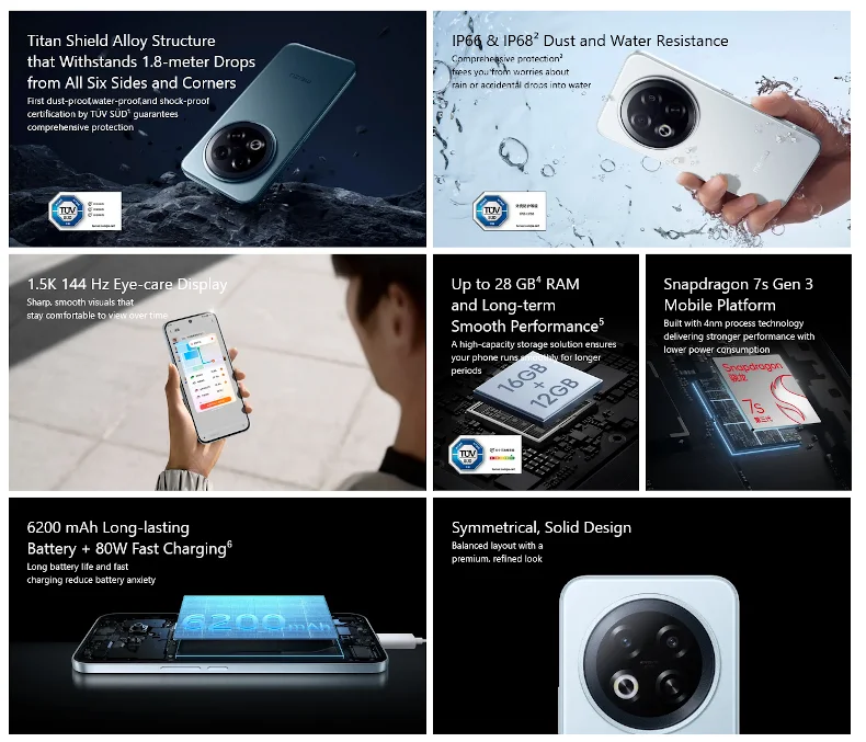 リフレッシュレート144Hzの高解像度な有機ELディスプレイや80W急速充電対応の大容量6200mAhバッテリー、防水防塵対応などが特徴です。
