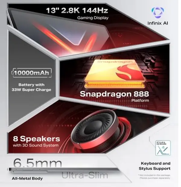 中国のスマートフォンブランド Infinixは、海外でSnapdragon 888搭載の13型ゲーミングタブレット「Infinix XPAD GT」を発表しました。