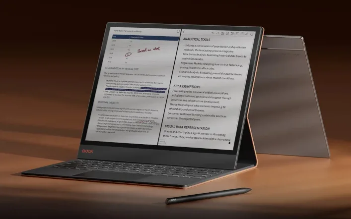 13.3インチのKaleido 3カラー電子ペーパーディスプレイを採用し、自然な色合いと目に優しい表示を実現。従来の液晶とは異なり、自然光を反射して表示ができるため、長時間の閲覧でも目が疲れにくい。