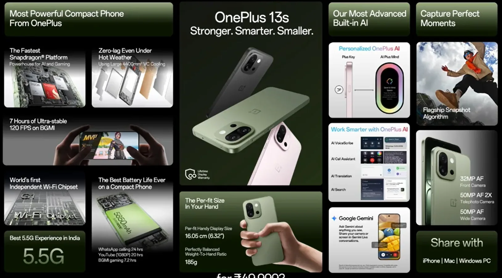 中国のブランドOnePlus(ワンプラス)は2025年6月5日、インドで6.32インチディスプレイのハイスペックスマートフォン「OnePlus 13s」を発表しました。