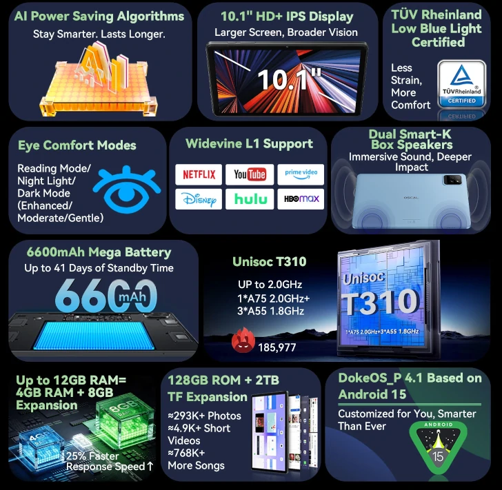 BlackviewのサブブランドOSCALが発表した「OSCAL Pad 30 WiFi」は、10.1インチディスプレイとUNISOC T310を搭載したAndroid 15対応のエントリータブレット。RAMは4GB、ストレージは最大128GB、6600mAhバッテリーやデュアルスピーカーを備えたWiFiモデル。カラーは3色展開。