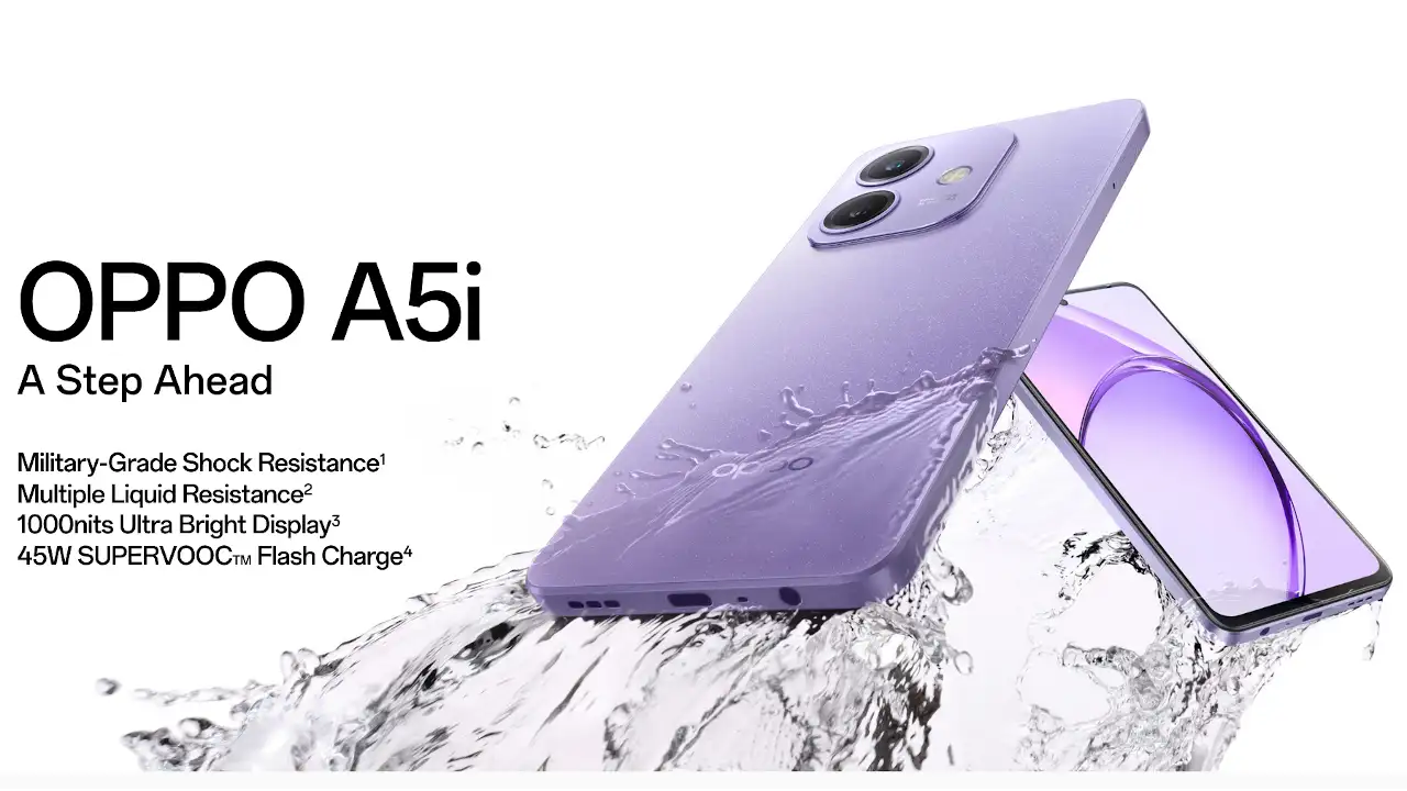 OPPO A5iは、Snapdragon 6s 4G Gen 1や90Hz駆動の6.67インチHD+ディスプレイ、5100mAhバッテリー(45W急速充電対応)を搭載したエントリー向け4Gスマートフォン。Android 15搭載、防水防塵耐衝撃、指紋認証と顔認証対応で、価格は未定ながら海外で2025年に発売予定。