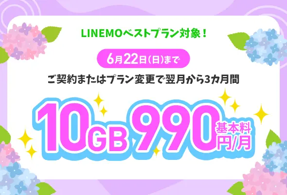 【期間限定】LINEMOベストプランが3カ月間990円!週穫祭キャンペーン実施中