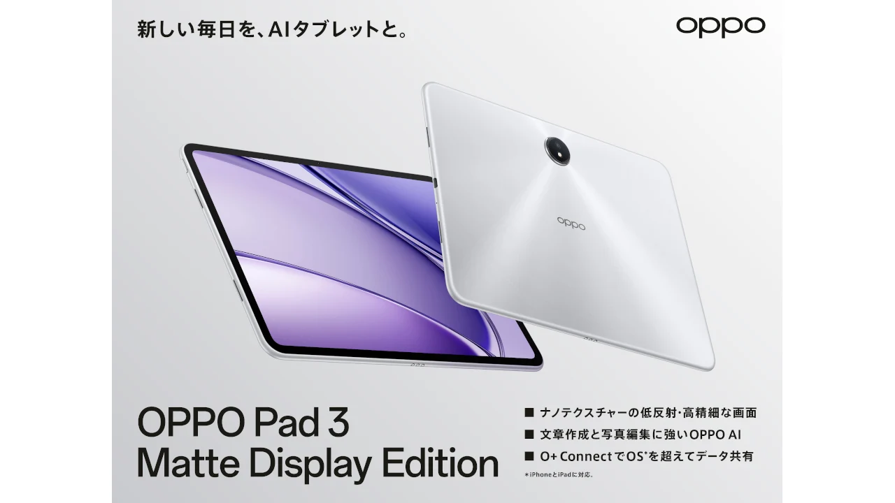 11.6インチのナノテクスチャーディスプレイ「OPPO Pad 3 Matte Display Edition」国内発売