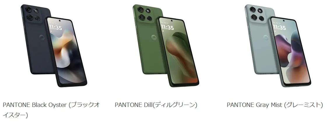 カラーはPANTONE Black Oyster (ブラックオイスター) , PANTONE Dill (ディルグリーン) , PANTONE Gray Mist (グレーミスト)の3色。「MOTO STORE」・国内オンラインショップ・家電量販店・MVNO事業者などで2025年7月10日発売予定、公式ストアでの価格は34,800円となっています。また、ワイモバイル向けにmoto g66y 5Gも販売します。