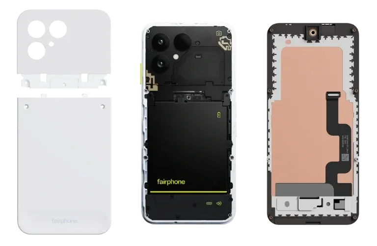 2023年に発売したFairphone 5の後継モデルで、修理が自分自身で可能なモジュール式(バッテリー、ディスプレイ、USB‑C、スピーカー、カメラなどドライバーだけで交換可能)で容易なことなど長く使えることが特長です。5年間の保証と2033年までセキュリティーアップデートが約束されています。