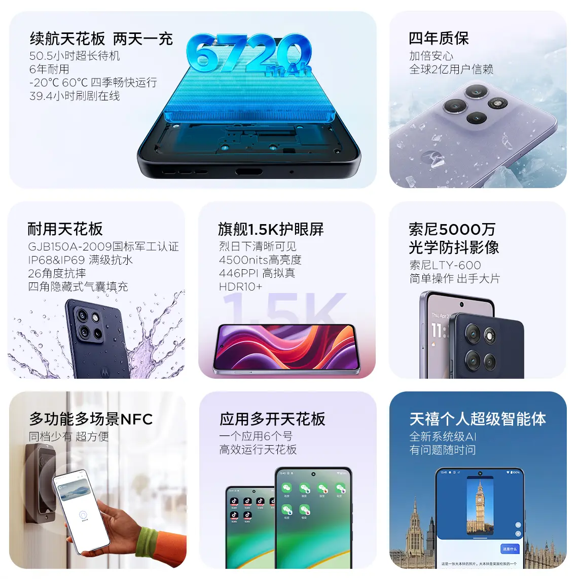 moto g100 Proは、Dimensity 7300や6720mAh大容量バッテリー、120Hz OLEDディスプレイを搭載した防水防塵耐衝撃対応の5Gスマートフォン。光学手ぶれ補正付き50MPカメラやDolby Atmos対応のステレオスピーカーなどを備え、RAMは最大12GB、価格は1399CNY(約2.9万円)から。中国市場で2025年7月発売。