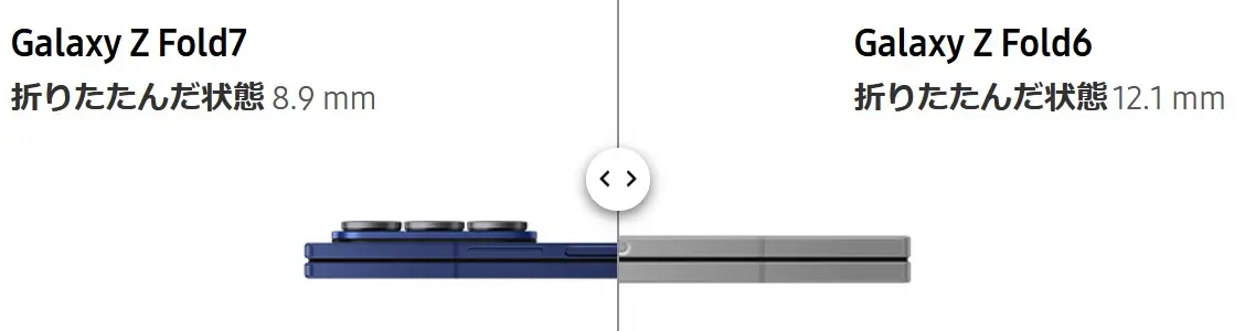 前モデルのFold6から画面大型化(7.6→8インチ)・24グラム軽量化(239→215グラム)、薄型化(12.1→8.9ミリ)している。Sペンは非対応となっています。