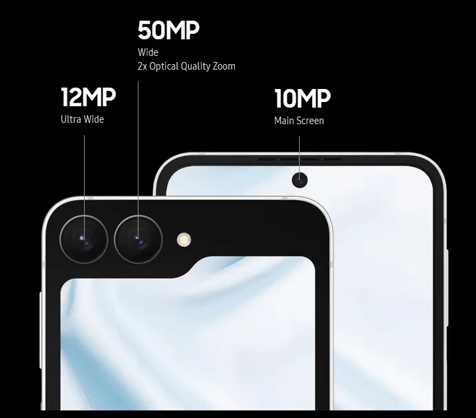 Galaxy Z Flip7 FE は、6.7インチFHD+ (2640×1080)ディスプレイ、CPUはExynos 2400 3.2GHz デカコア(10コア)、RAM8GB、ストレージ容量は128GB/256GB、メインカメラは5000万画素+1200万画素デュアルカメラ搭載のハイスペックな折り畳み式Androidスマートフォンとなっています。