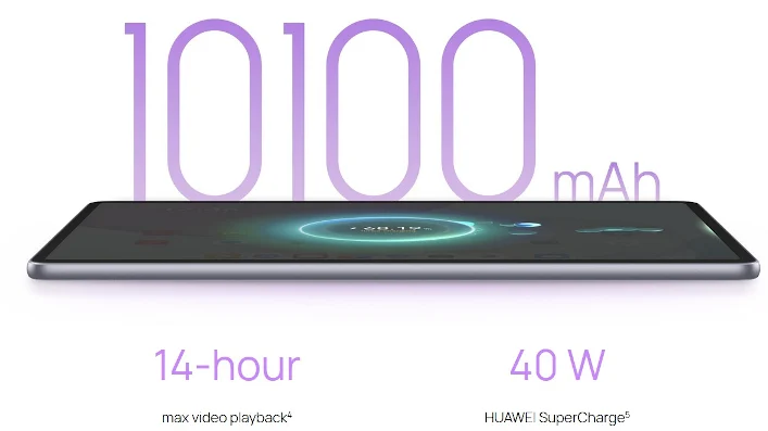 バッテリー容量は10100mAhで40W急速充電に対応、クアッドスピーカー搭載、スタイラスペンHUAWEI M-Pencil (3rd generation) 対応。接続端子はUSB Type-C、イヤホン端子はなしです。Google関連のアプリやPlayストアは利用できません。