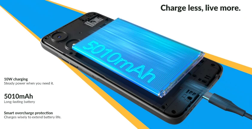ローエンド又はエントリークラス向けの軽量OSである「Android 15(Go Edition)」採用や5010mAhバッテリーなどが特長のモデルです。顔認証対応、イヤホン端子はあり、接続端子はUSB Type-Cです。