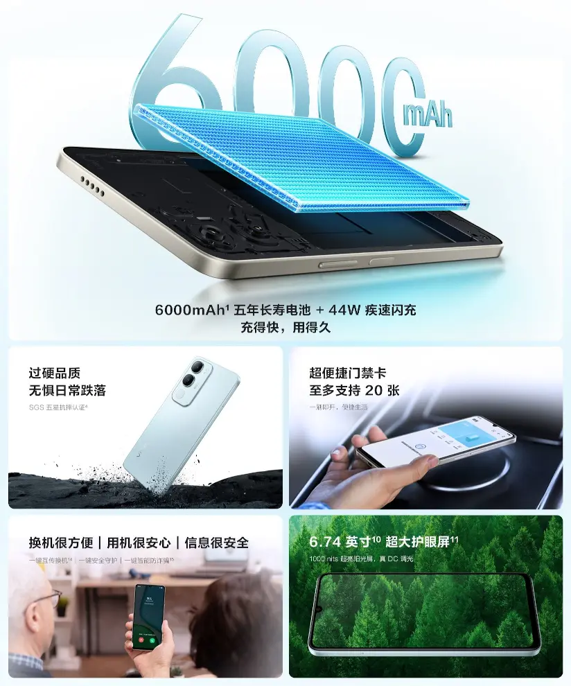 vivo Y50 5Gは、Dimensity 6300や最大12GB RAM、6000mAh大容量バッテリーを搭載した5G対応のミッドレンジスマートフォン。6.74インチHD+ディスプレイやIP64防水防塵、急速充電44W、指紋・顔認証対応など、中国で2025年7月発売。