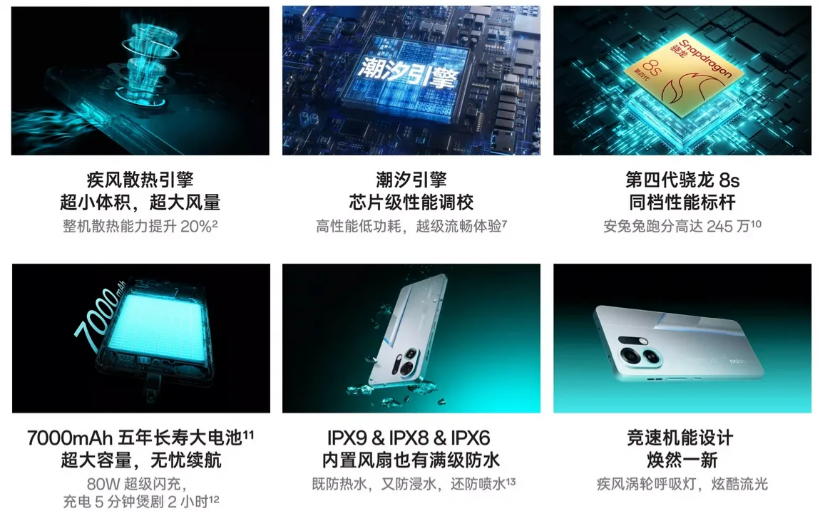 空冷ファン搭載や80W充電対応7000mAhバッテリー、防水防塵対応、リフレッシュレート120Hzの有機ELディスプレイなどが特徴のモデルです。