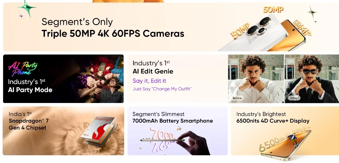 中国のOPPO系メーカーRealMeは2025年7月25日、Snapdragon 7 Gen 4搭載の5Gスマートフォン「realme 15 Pro 5G」をインドで発表しました。