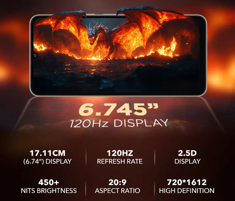 Lava Blaze Dragon は、6.745インチHD+(1612×720)ディスプレイ、CPUはSnapdragon 4 Gen 2 SM4450 2.2GHz オクタコア、RAM4GB/6GB、ストレージは128GB、メインカメラは5000万画素カメラ搭載のエントリークラスのアンドロイドスマートフォンです。