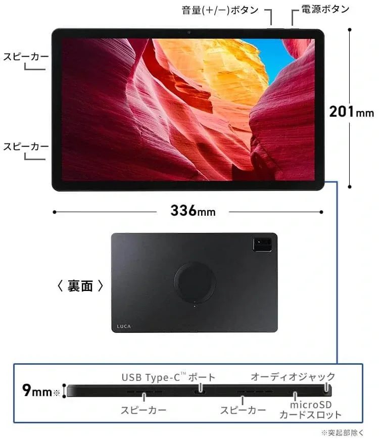 14インチAndroidタブレット「LUCAタブレット TM14D1M76-V1B」発売