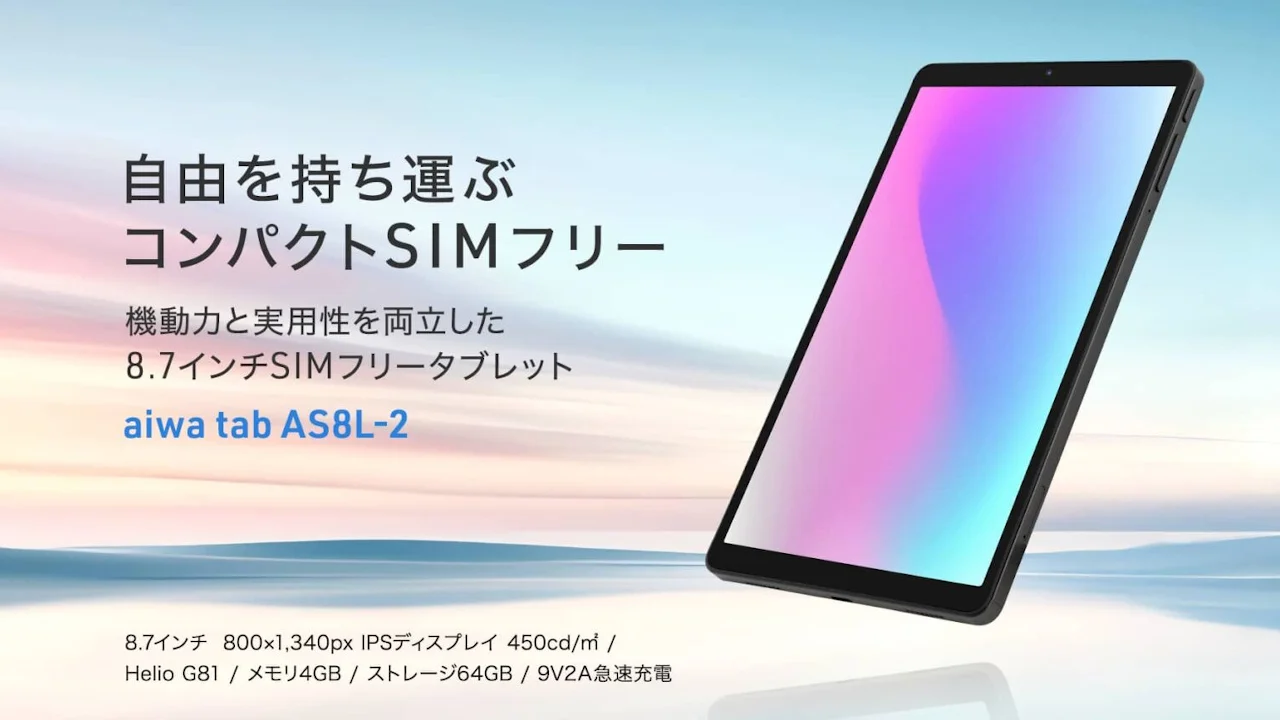アイワマーケティングジャパンは2025年8月5日、aiwa(アイワ)ブランドで8.7インチSIMフリーAndroidタブレット「aiwa tab AS8L-2」を発表しました。