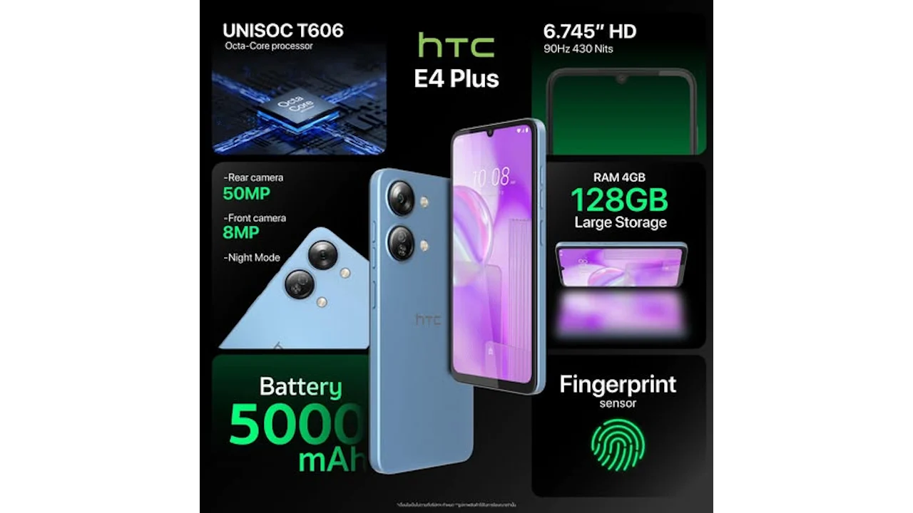 HTC Wildfire E4 PlusはUNISOC T606や6.75インチ90Hzディスプレイを搭載した4Gスマホ。5000万画素カメラと5000mAhバッテリーを備えるエントリーモデル。タイで発売、価格は3599バーツ(約1.7万円)。