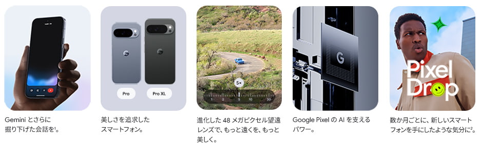 新SoC「Google Tensor G5」搭載やリフレッシュレート120HzのSuper Acureディスプレイ、光学5倍ズームのトリプルカメラ、AI「Gemini Nano」をなどが特徴のモデルです。