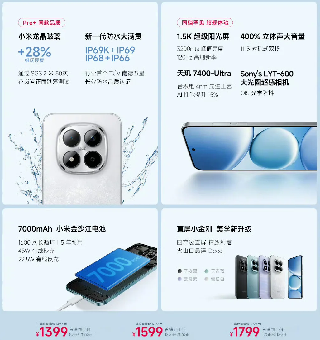 中国のメーカー小米科技(Xiaomi シャオミ)は2025年8月21日、7000mAhバッテリー搭載の5Gスマートフォン「REDMI Note 15 Pro」を中国で発表しました。