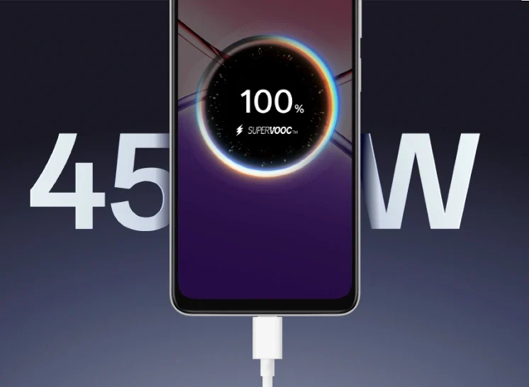バッテリーは、持ち運びやすいスリムなボディに、Aシリーズ最大となる6,000mAhの大容量を搭載しました。急速充電は45W SUPERVOOCTMと33W PPSに対応しており、45W SUPERVOOCTM急速充電を使うと、約36分で1%のバッテリー残量から50%まで充電できます。