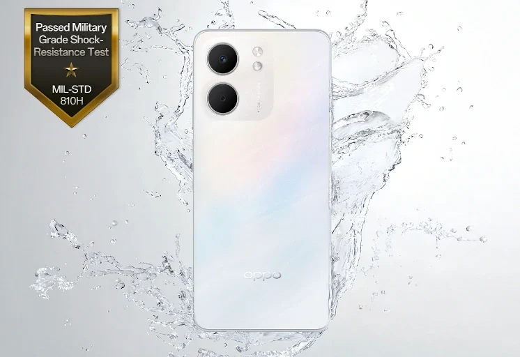 45W充電対応6000mAhバッテリーやリフレッシュレート90Hzのディスプレイ、防水防塵耐衝撃(IP65/MIL-STD-810H)対応などが特徴です。OSはAndroid 15 (ColorOS 15.0)、生体認証は指紋認証センサーと顔認証に対応、イヤホン端子はあり、接続端子はUSB Type-Cです。