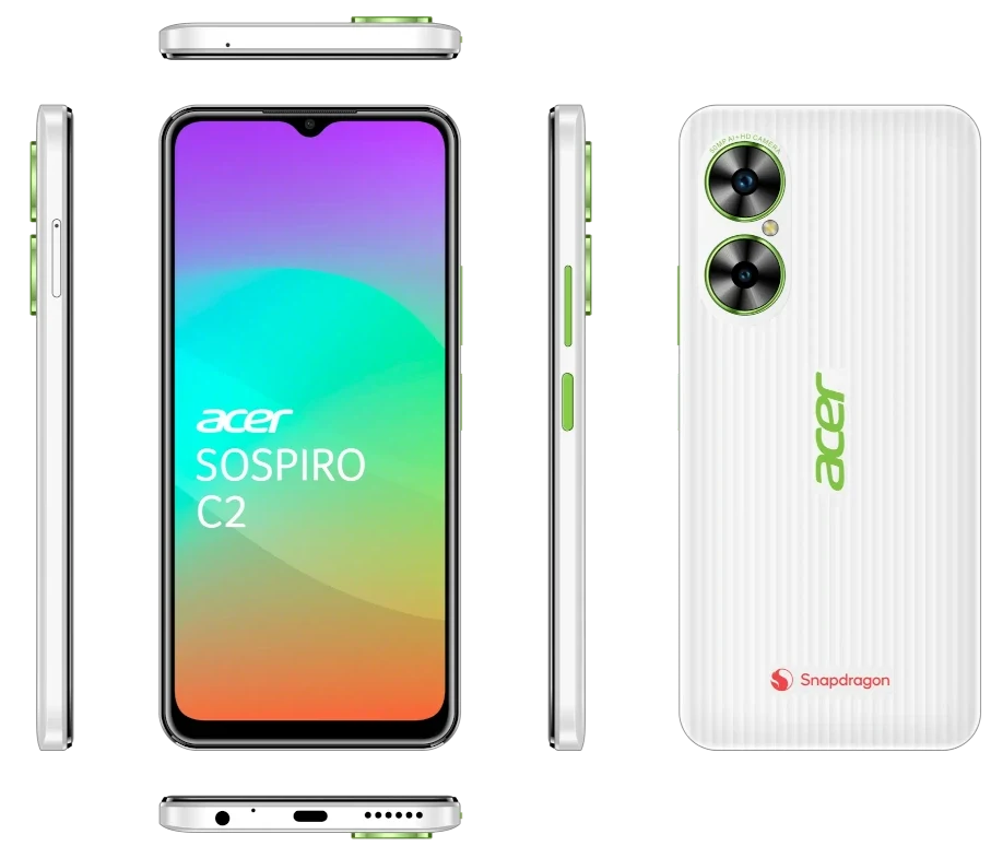 Acer SOSPIRO C2 は Snapdragon 680 搭載の6.52型HD+スマホ。5000万画素デュアルカメラや5000mAhバッテリーのエントリーモデル。海外で発売。