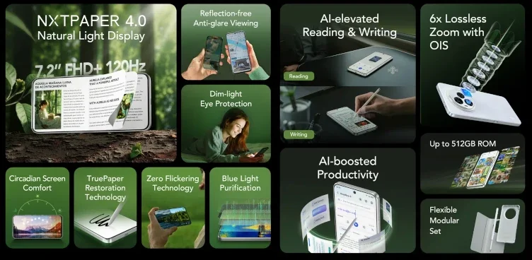TCL NXTPAPER 60 Ultra は 7.2インチ大型ディスプレイ搭載ファブレット。Dimensity 7400やペリスコープ望遠のOIS対応5000万画素トリプルカメラ。海外で発売、価格は499ユーロ(約8.7万円)から