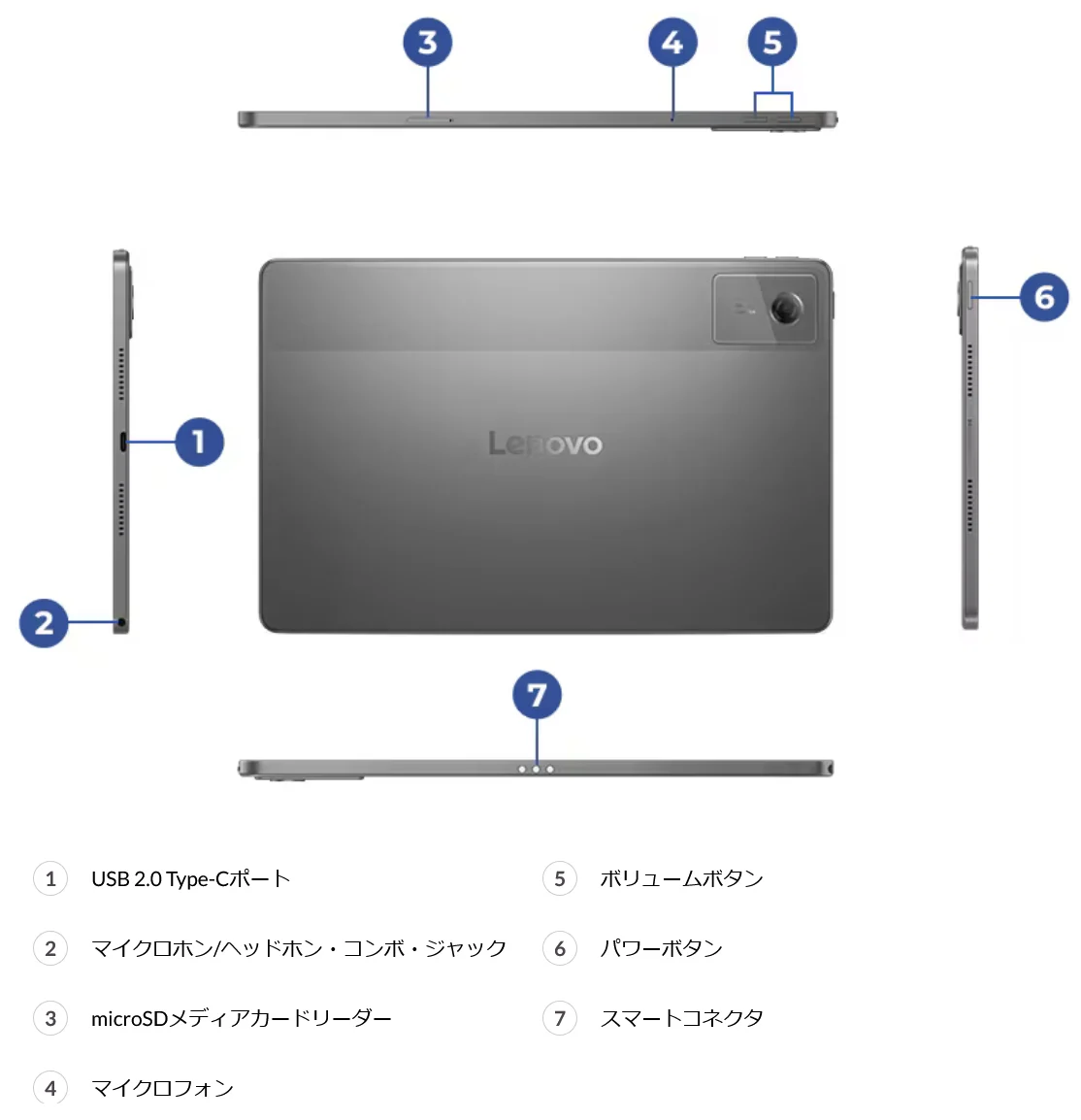 リフレッシュレート90Hzの高解像度ディスプレイやクアッドスピーカーなどが特徴のモデルです。防水防塵対応、Lenovo AI Note、バッテリー容量は7040mAh、スタイラスペン対応、OSはAndroid 15、イヤホンジャックはあり、接続端子はUSB Type-Cです。
