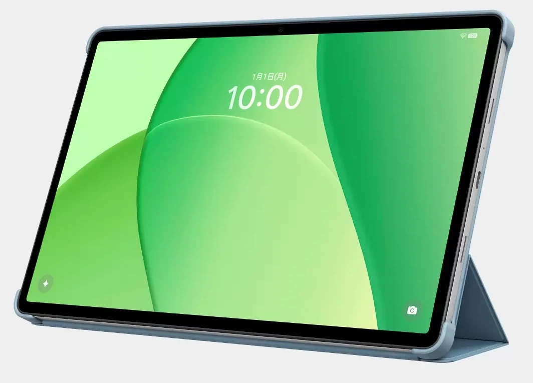 33W充電対応9340mAhバッテリーやリフレッシュレート90Hzディスプレイ、クアッドスピーカーなどが特徴のWiFiモデルです。OSはAndroid 15(ColorOS)、顔認証対応、接続端子はUSB Type-Cです。オプションでスタンド機能付きの専用ケースも用意されています。