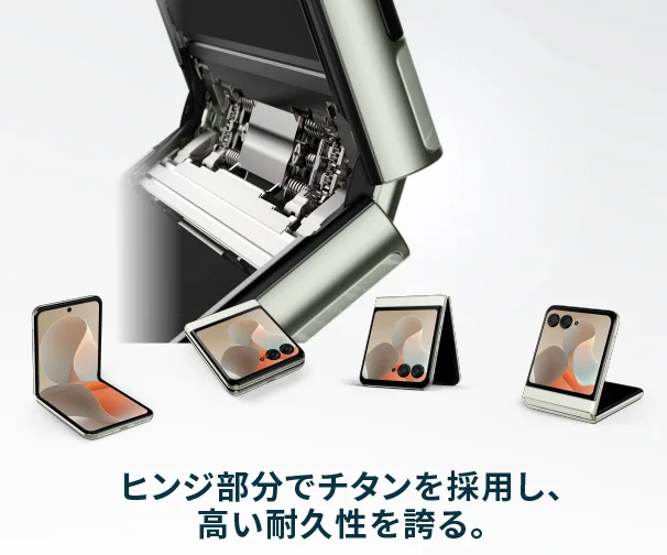 画面を折り畳める(フォルダブル)のが特徴のモデルで6.9インチディスプレイを縦に折り畳たむことによりコンパクトになります。折り畳み時にタッチ操作可能な3.6インチの外部ディスプレイはスマホを開かずに動画や音楽を再生したり、通知を確認することができます。