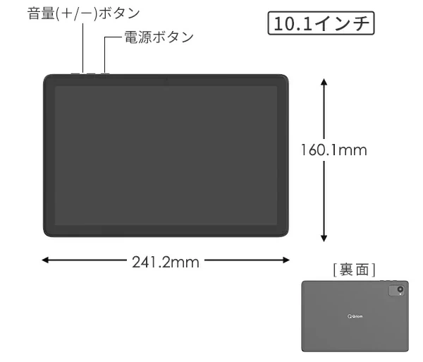 Qriom Androidタブレット QA15-101は、 10.1インチWXGA(1280×800)ディスプレイ、CPUはUNISOC T606 1.6Ghz オクタコア、RAM3GB、ストレージ容量は64GB、メインカメラは800万画素カメラ搭載のエントリークラスのアンドロイドタブレットです。
