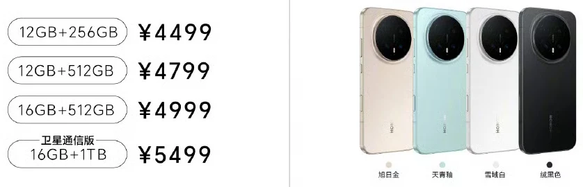 カラーはゴールド、ブルー、ホワイト、ブラックの4色。2025年10月に発売、中国での価格はRAM12GB/256GBモデルが4499CNY(約9.6万円)、RAM12GB/512GBモデルが4799CNY(約10.2万円)、RAM16GB/512GBモデルが4999CNY(約10.6万円)、衛星通信対応RAM16GB/1TBモデルが5499CNY(約11.7万円)となっています。