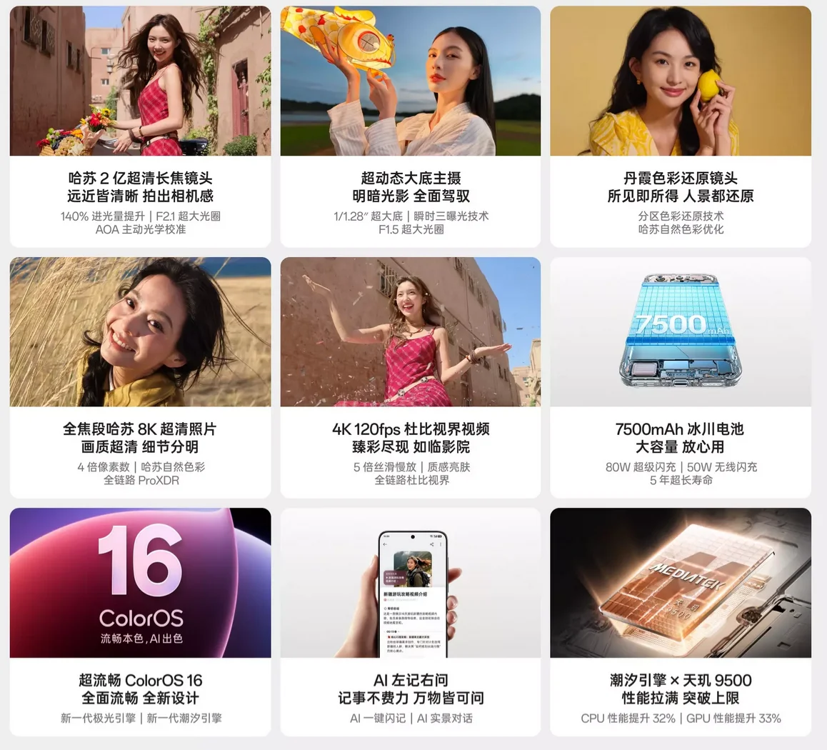 Hasselblad監修でLYT-828センサー採用のトリプルカメラや新SoC MediaTek Dimensity 9500採用、80W高速充電と50Wワイヤレス充電に対応した7500mAhバッテリーなどが特徴のモデルです。また、オプションで230mmのテレコンレンズも用意されています。