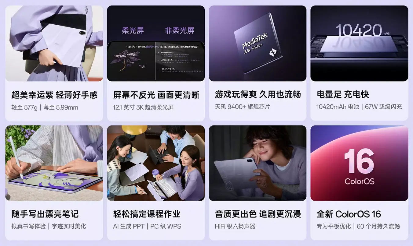 中国のメーカーOPPO(オッポ)は2025年10月16日、中国でMediaTek Dimensity 9400+搭載の12.1インチAndroidタブレット「OPPO Pad 5 (OPD2506)」を発表しました。