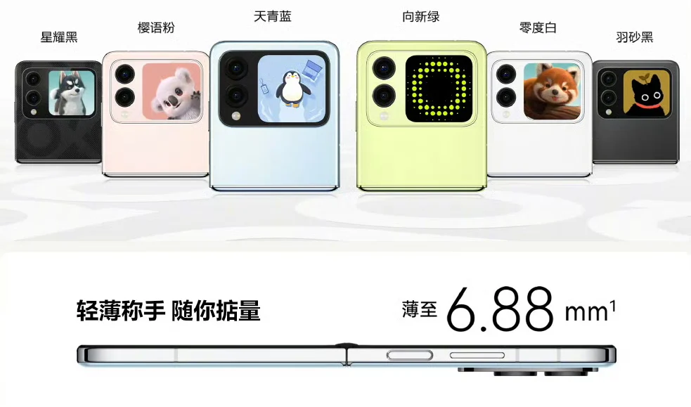 カラーはグリーン、ホワイト、サクラピンク、スターブラック、スカイブルー、フェザーサンドブラックの6色展開。中国で2025年10月に発売、価格は256GBモデルが3488CNY(約7.4万円)、512GBモデルが3788CNY(約8.0万円)となっています。