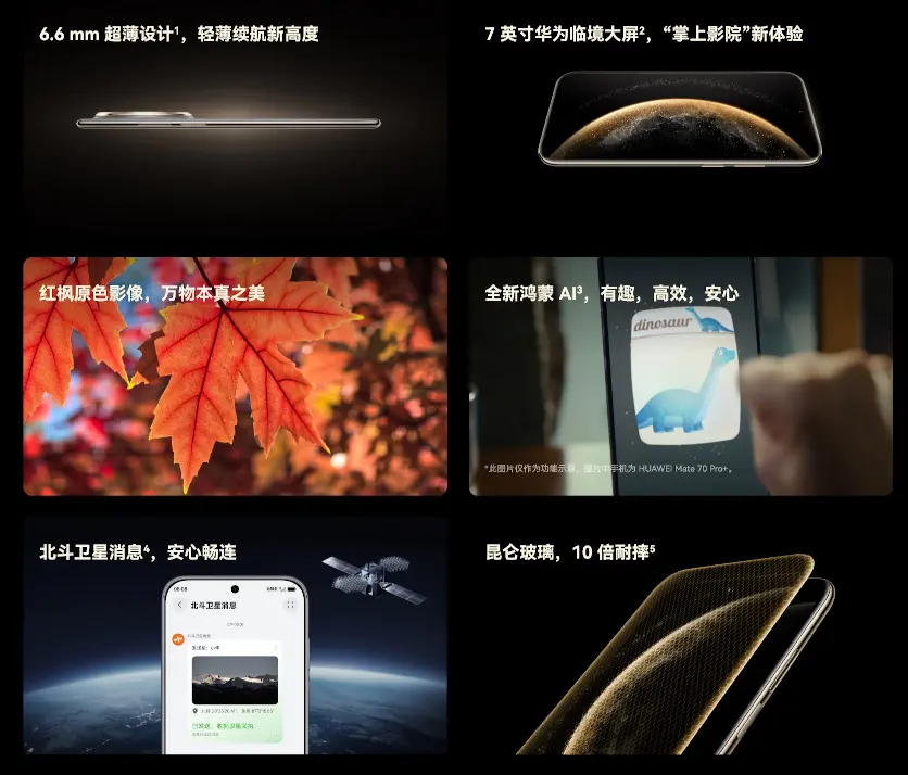 中国のメーカーHuawei(ファーウェイ)は2025年11月6日、7インチディスプレイのハイスペックファブレット「HUAWEI Mate 70 Air」 を中国で発表しました。