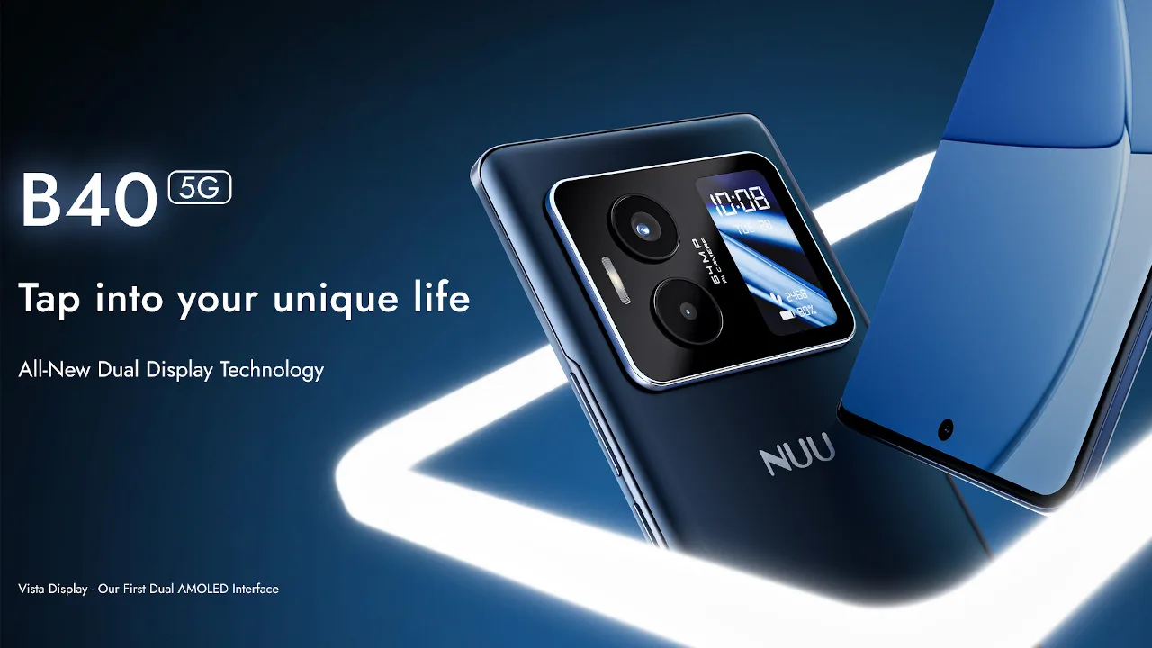 NUU B40 5G は、Dimensity 7025搭載の6.7インチFHD+有機ELスマートフォン。背面1.6インチディスプレイや33W急速充電対応5000mAhバッテリーを備えた5G対応モデル。アメリカで発売、価格は299.99ドル(約4.6万円)。