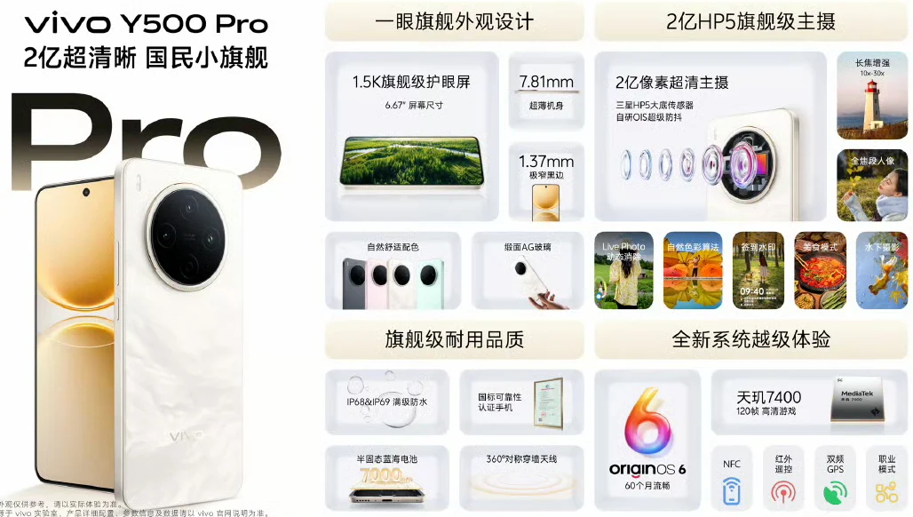 中国のメーカーvivoは2025年11月10日、中国でMediaTek Dimensity 7400搭載の5G対応スマートフォン「vivo Y500 Pro (V2516A)」を発表しました。