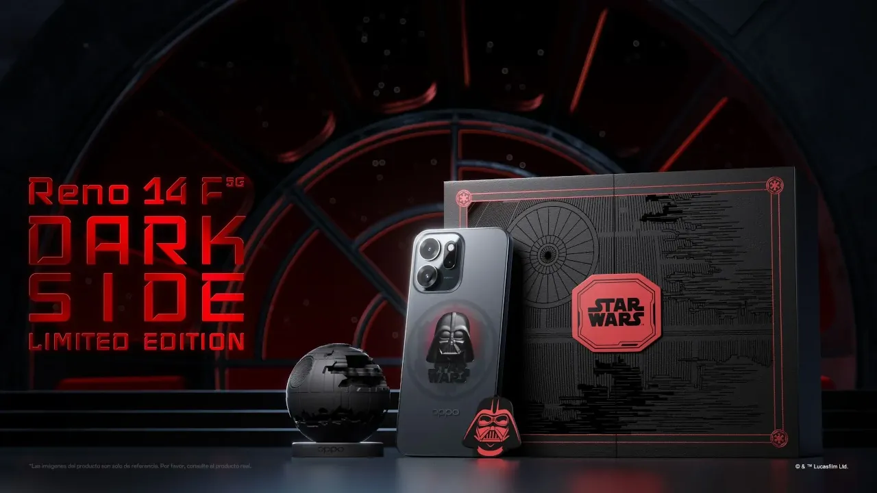 OPPO Reno14 F Dark Side Limited Edition は、スターウォーズとコラボした限定版5Gスマートフォンです。背面デザインや付属品がスターウォーズ仕様となる特別モデル。2025年11月に南米で台数限定発売。