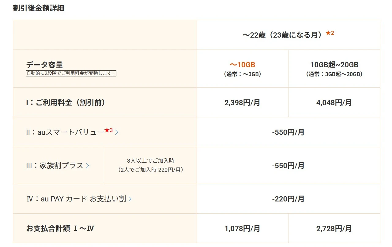 au「U18バリュープラン」概要