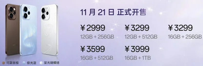カラーはブラウン、ブルー、シルバーの3色展開。中国で2025年11月発売、価格はRAM12GB/256GBモデルが2999CNY(約6.6万円)、RAM12GB/512GBモデルが3299CNY(約7.2万円)、RAM16GB/256GBモデルが3299CNY(約7.2万円)、RAM16GB/512GBモデルが3599CNY(約7.9万円)、RAM16GB/1TBモデルが3999CNY(約8.8万円)となっています。