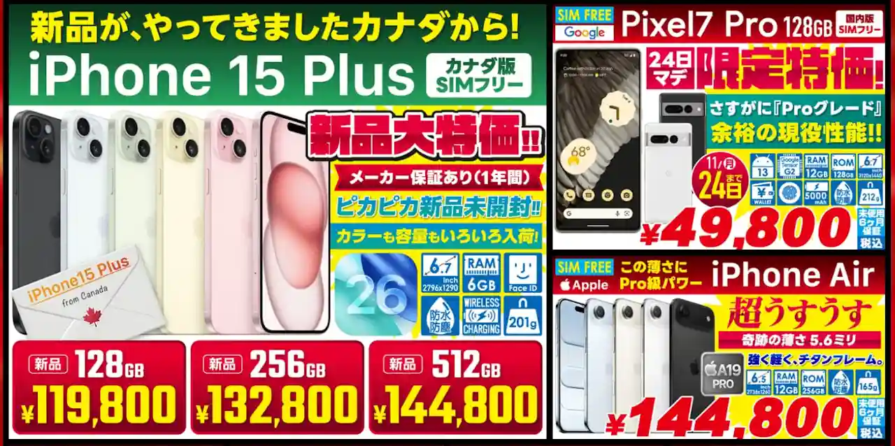 – iPhone 15 Plus カナダ版 128GB:¥119,800